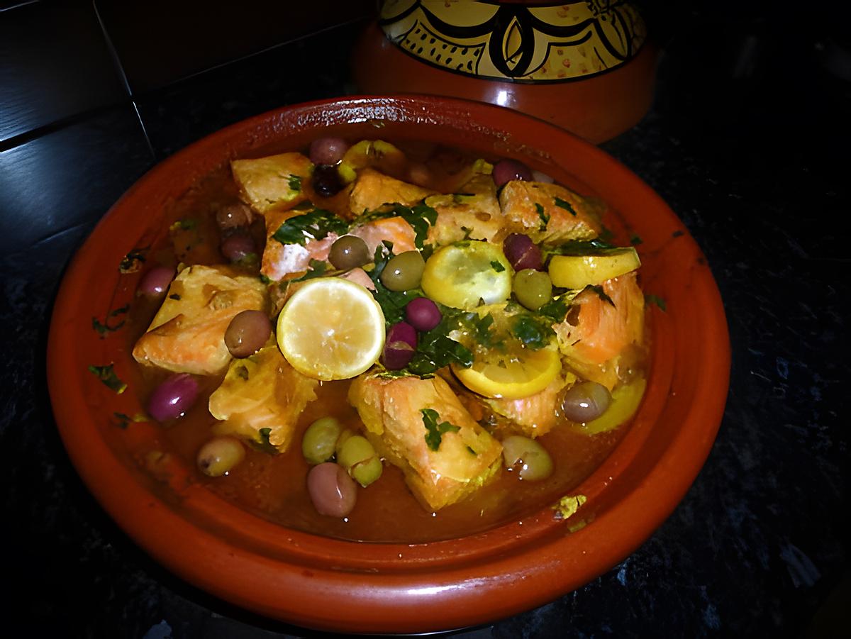 Laver le saumon et le couper en gros morceaux.Emincé les oignons les disposer sur le tajine avec l'huile d'olive couvrire et laisser cuire a feu doux.Préparé tout les légumes ,puis disposer les carottes et laisser cuire 10min,puis ajouter les pommes de terre ainsi que les épices puis 2 verres d'eau laisser cuire 10 autre min ajouter le saumon le citron en rondelles les olives et la coriandre laisser mijoter a feu doux 20 bonne minute c présbon appétit .